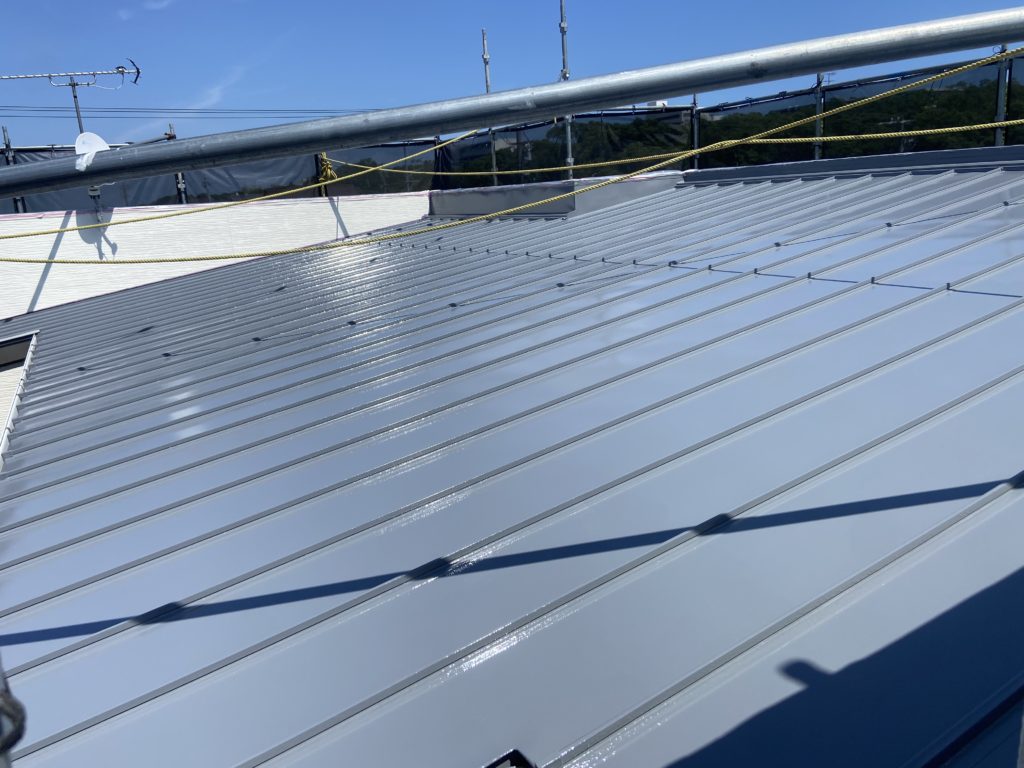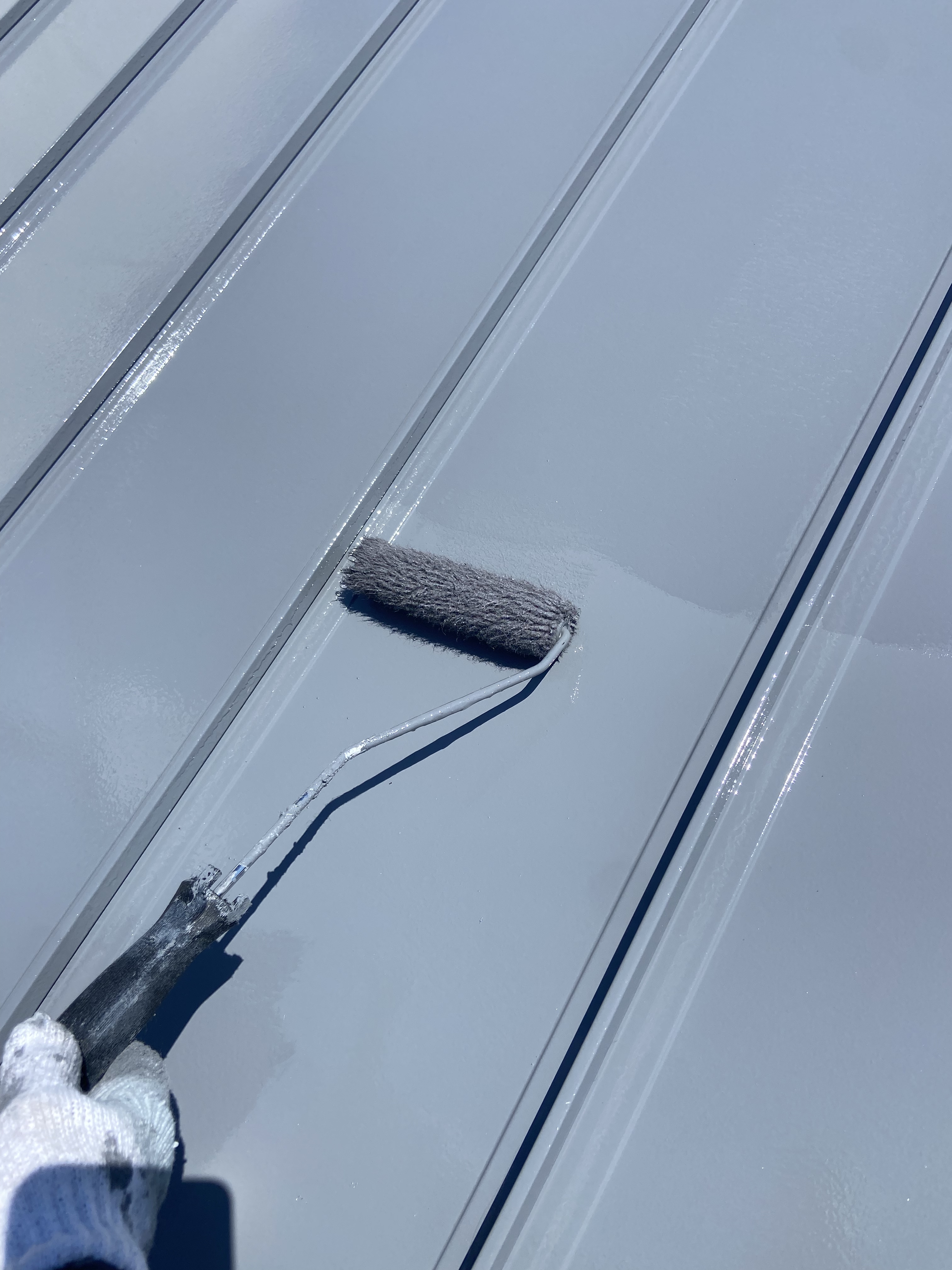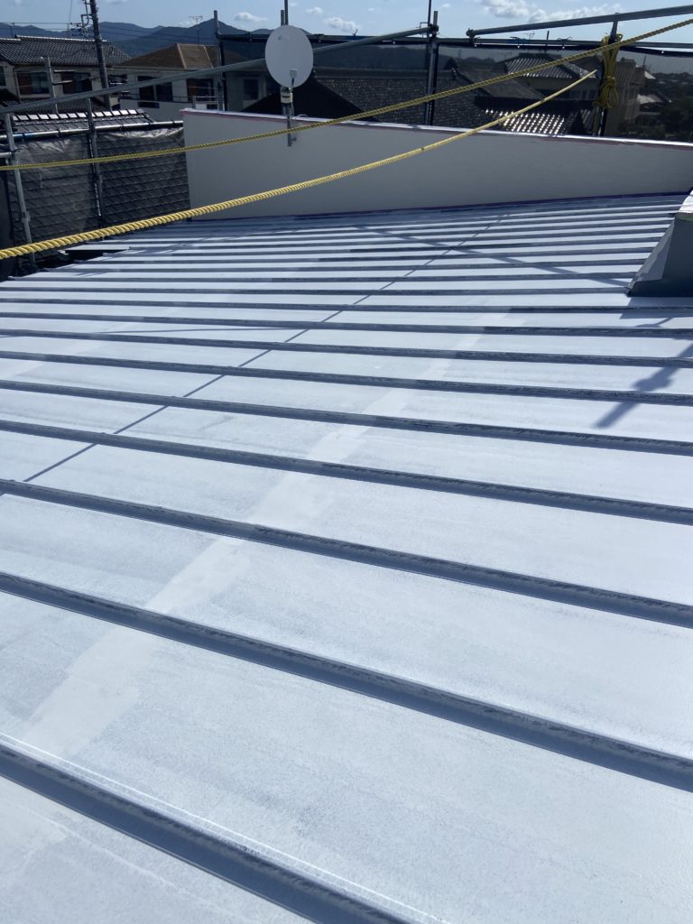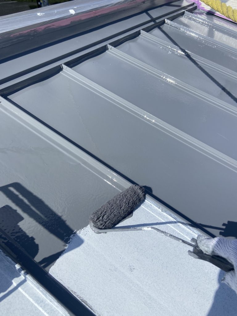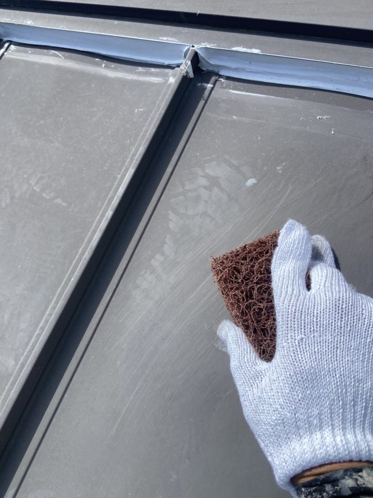 I様邸塗装工事 工事写真④(屋根・他塗装工事) 未分類 2025.08.10 【屋根・塗装工事施工写真】 屋根を塗る前に塗料の密着を良くする為 マジックロンなどで表面に傷をつけ 目あらしをします 【屋根・塗装工事施工写真】 下塗り施工中 2液のプライマーを塗布 【屋根・塗装工事施工写真】 下塗完了! 【屋根・塗装工事施工写真】 中塗り施工中! このあともう一度塗って 上塗り施工します! 【屋根・塗装工事施工写真】 上塗り施工中! 【屋根・塗装工事施工写真】 屋根施工完了! 【他・塗装工事施工写真】 樋・水切り・シャッターボックス等を 塗装します!